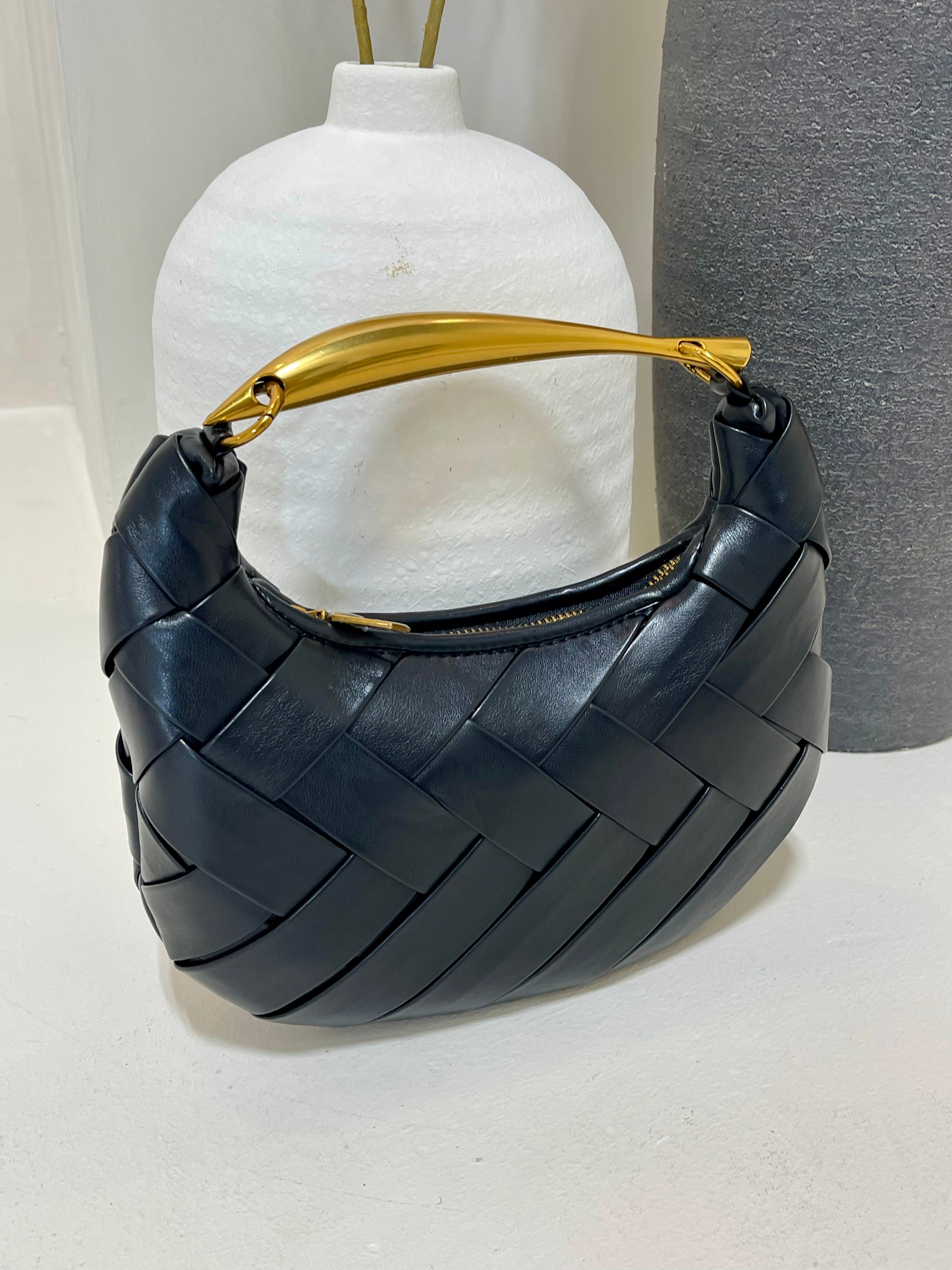Go bold with the Kelsey Faux Leather Woven Handbag. This designer inspired bag features a unique woven design and luxurious vegan leather. Crafted gold hardware and a detachable gold chain, it's easy to switch from a chic crossbody to a trendy handbag. Take your fashion game to the next level with this must-have accessory.