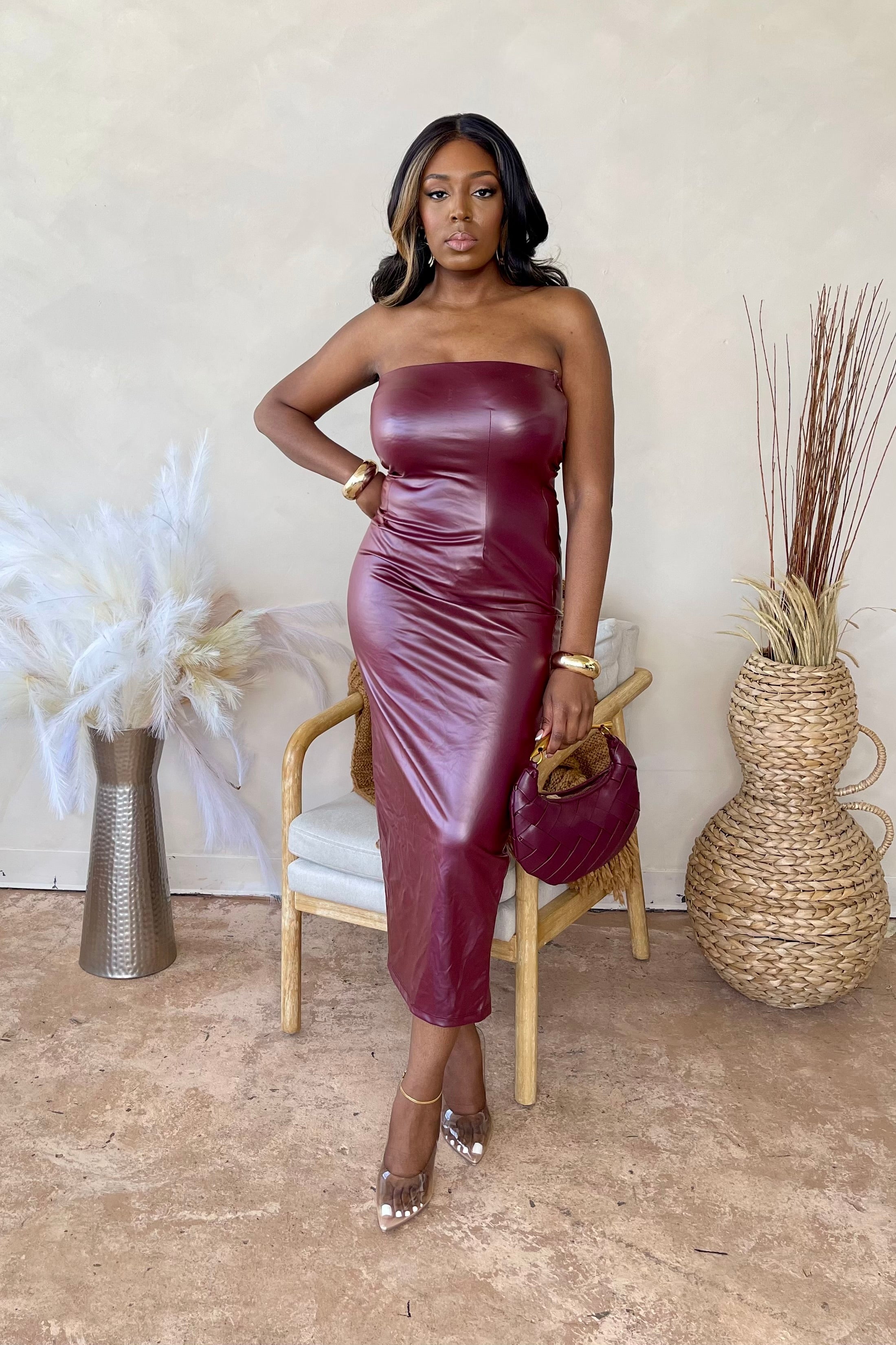 Figure It Out Faux Leather Midi Dress - Burgundy (Final Sale)