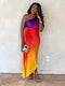 Forever Yours Pleated Asymmetrical Maxi Dress - Purple/Orange Ombre