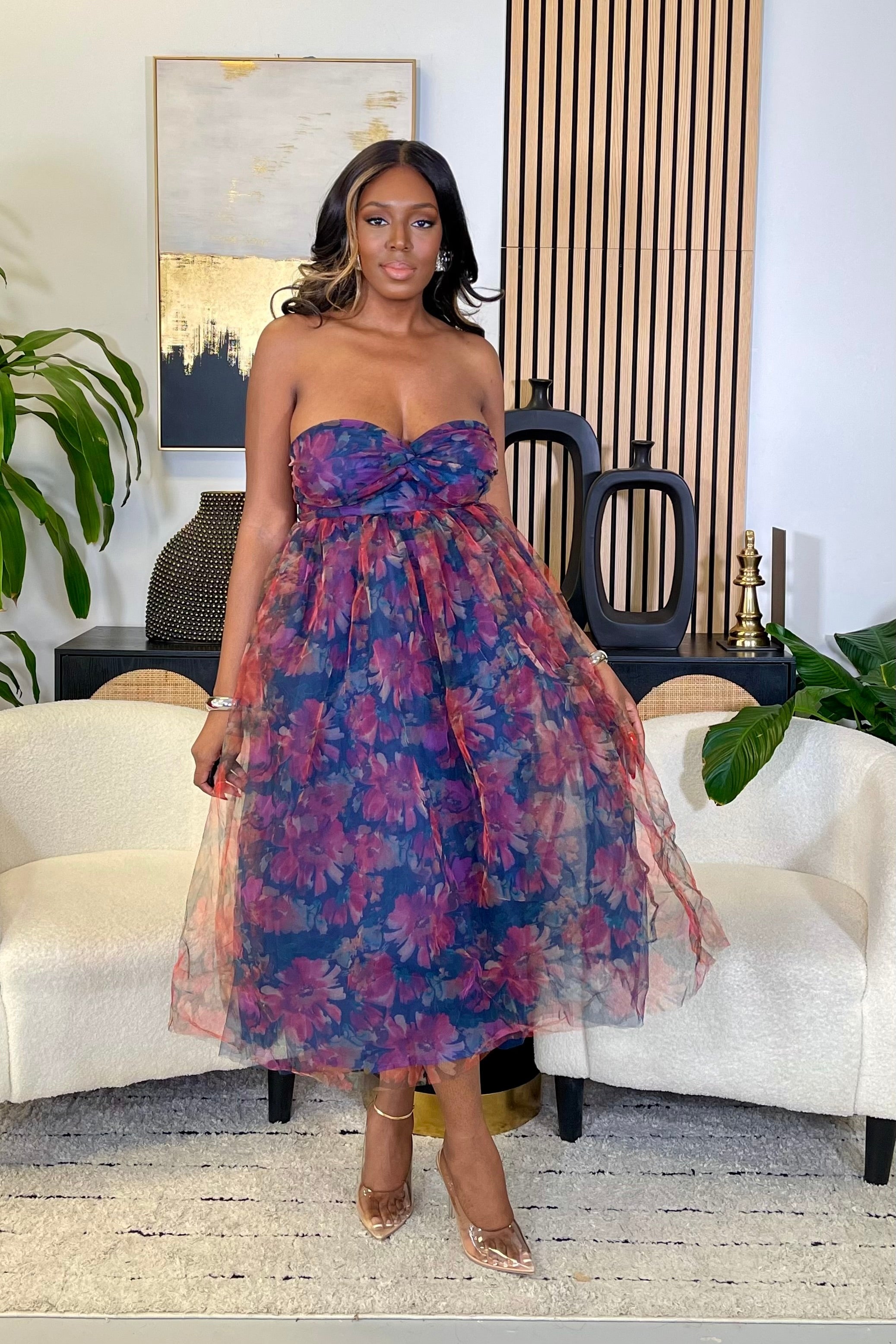 Unleash your inner fashionista with our Purple Reign Organza Dress! This gorgeous midi dress exudes sophistication and features delicate organza fabric, a flattering strapless design, and a charming sweetheart neckline. Plus, the convenient zipper closure in the back makes it easy to wear.