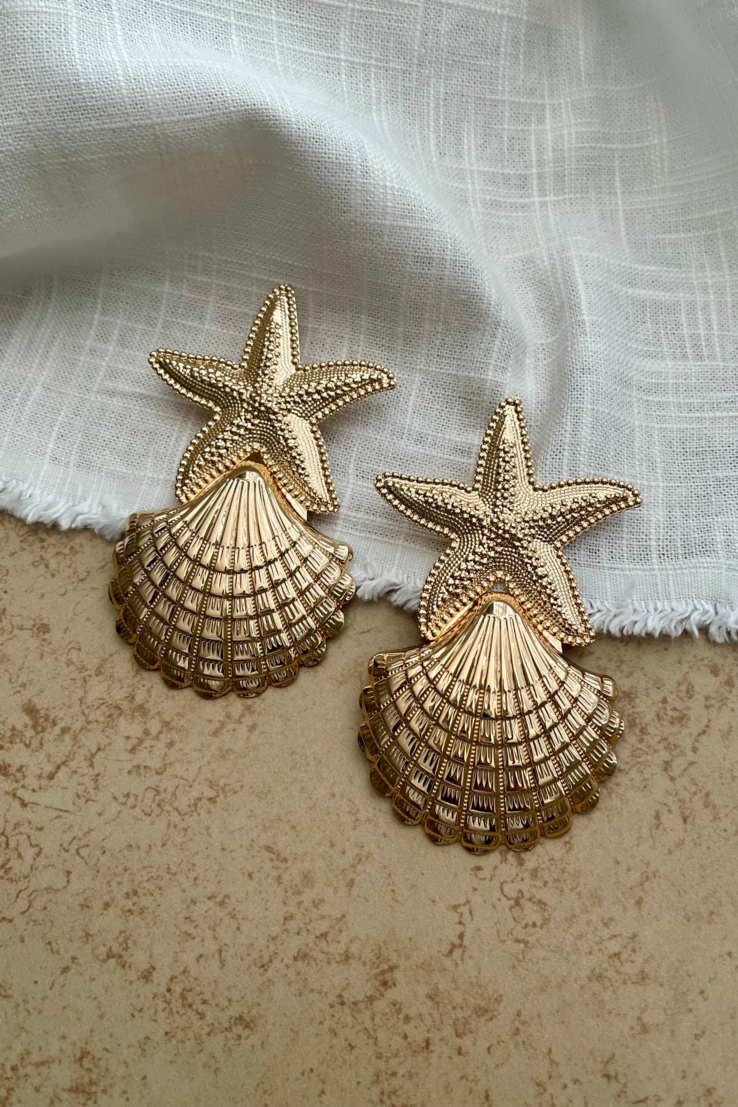 Ari Large Scallop and Starfish Statement Earrings - Gold