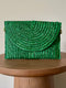 A stunning blend of elegance and casual charm. This straw clutch bag, adorned with a chic gold chain, is perfect for any occasion. Elevate your accessory game with this cute bag.